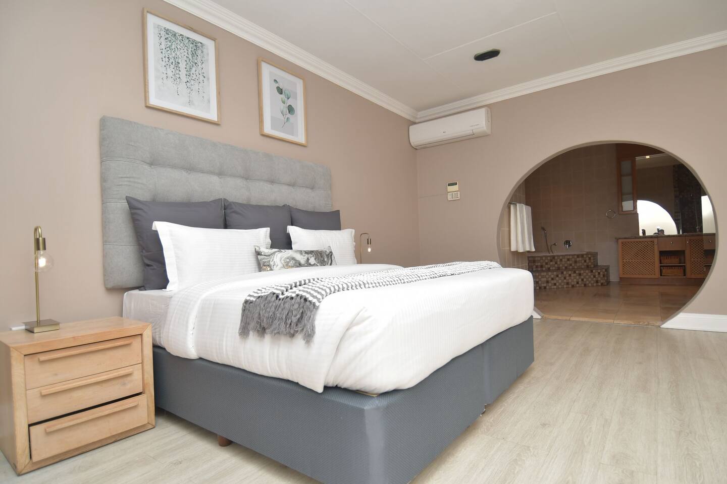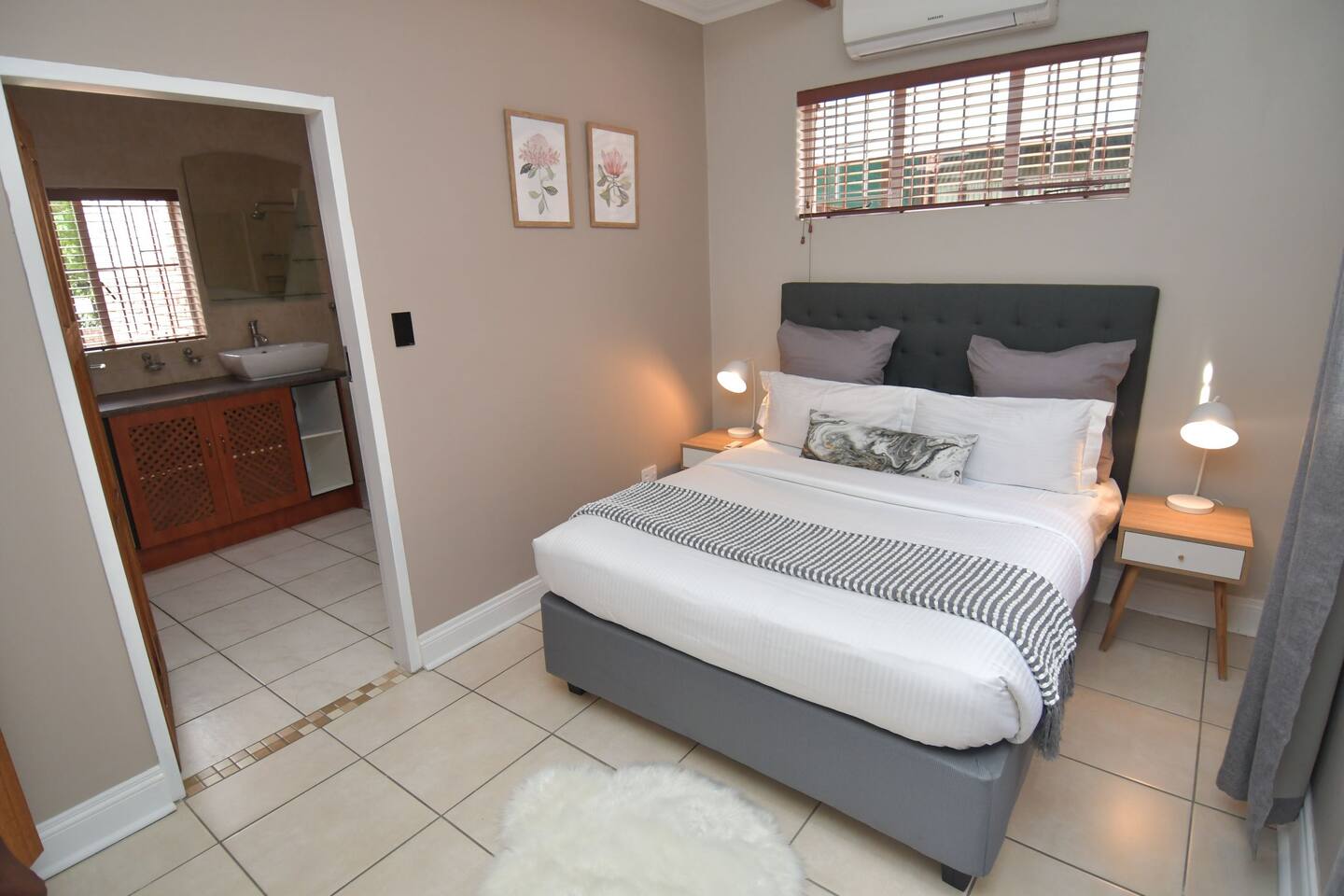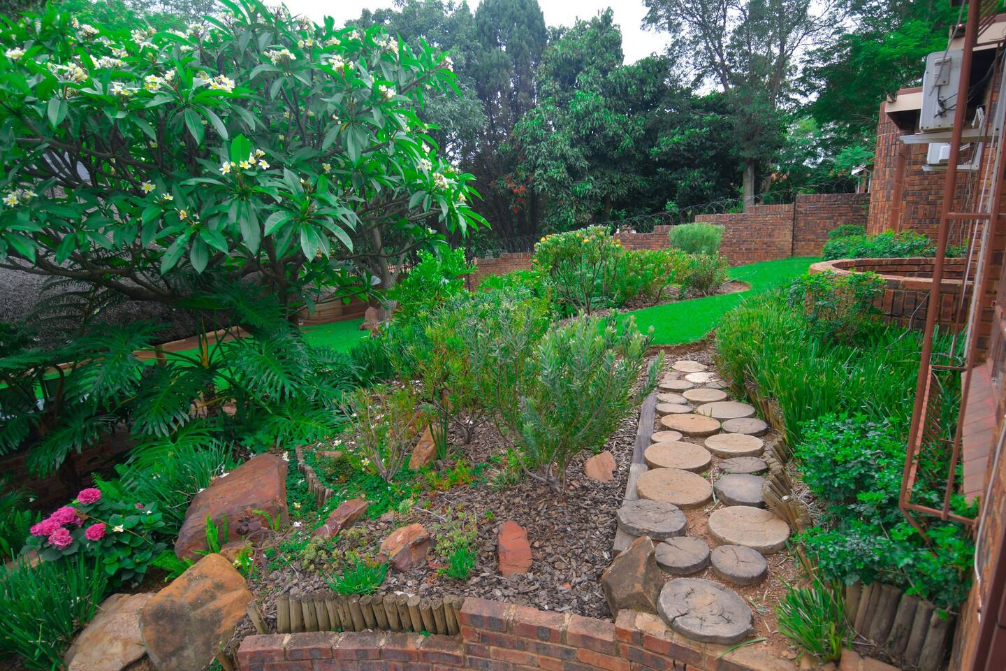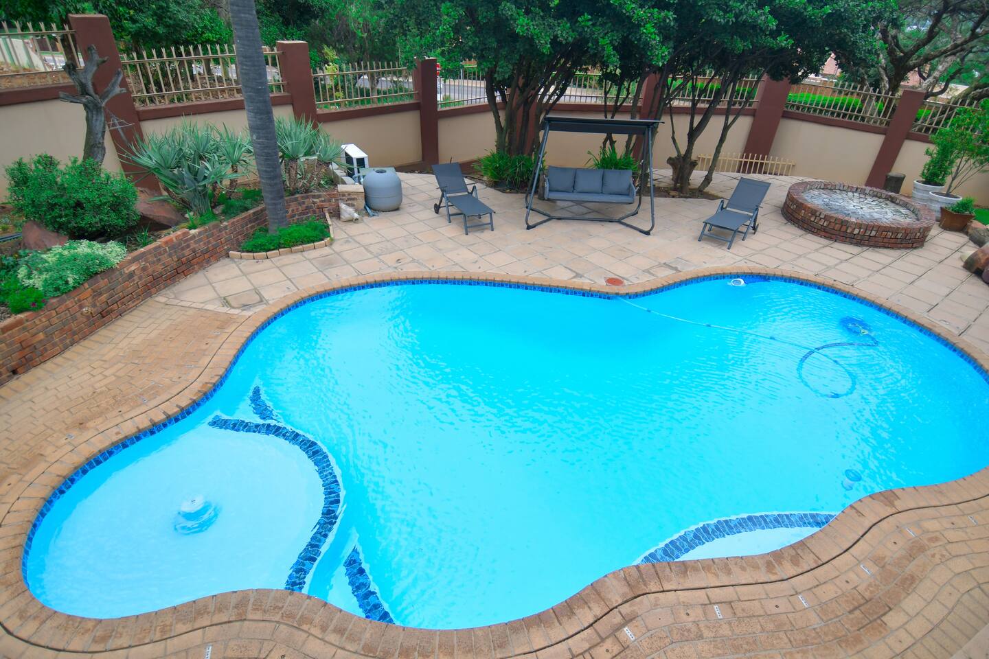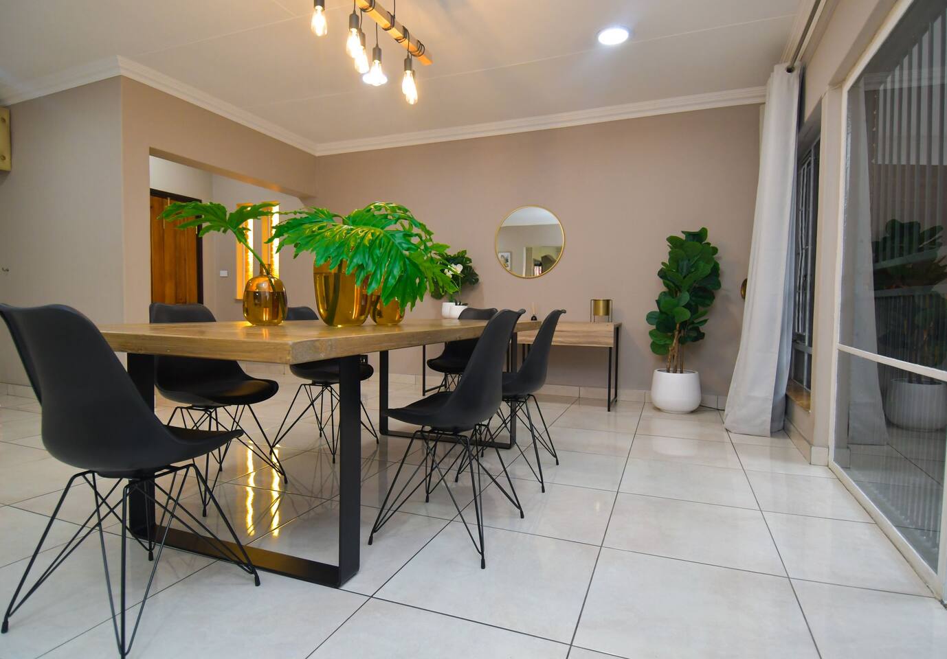 Soak up the modern and contemporary charm of this newly renovated and spacious home. Enjoy your stay without worrying about power outages as our property is equipped with a generator to keep lights, TV and essential appliances in working order. Play your favorite shows or music on Netflix, YouTube premium or DSTV on 2 TVs (65 and 55inch) via voice commands, all facilitated by a high speed (50mbps) uncapped and unshaped internet connection. Use you voice to turn on/off the lights as you please or have them turn on automatically in the morning to wake you up. Enjoy access to 2 living rooms, 2 kitchens and a gorgeous dining room. A full self catering unit is included if privacy is required within your group. The unit comes fully equipped with it's own living area, bedroom and bathroom. The house is cleaned and serviced 2 times a week at no additional cost. Sleep in bedrooms overlooking a beautiful garden, equipped with air conditioners and high quality mattresses while our fine bedding will carress you into a night of peaceful sleep.