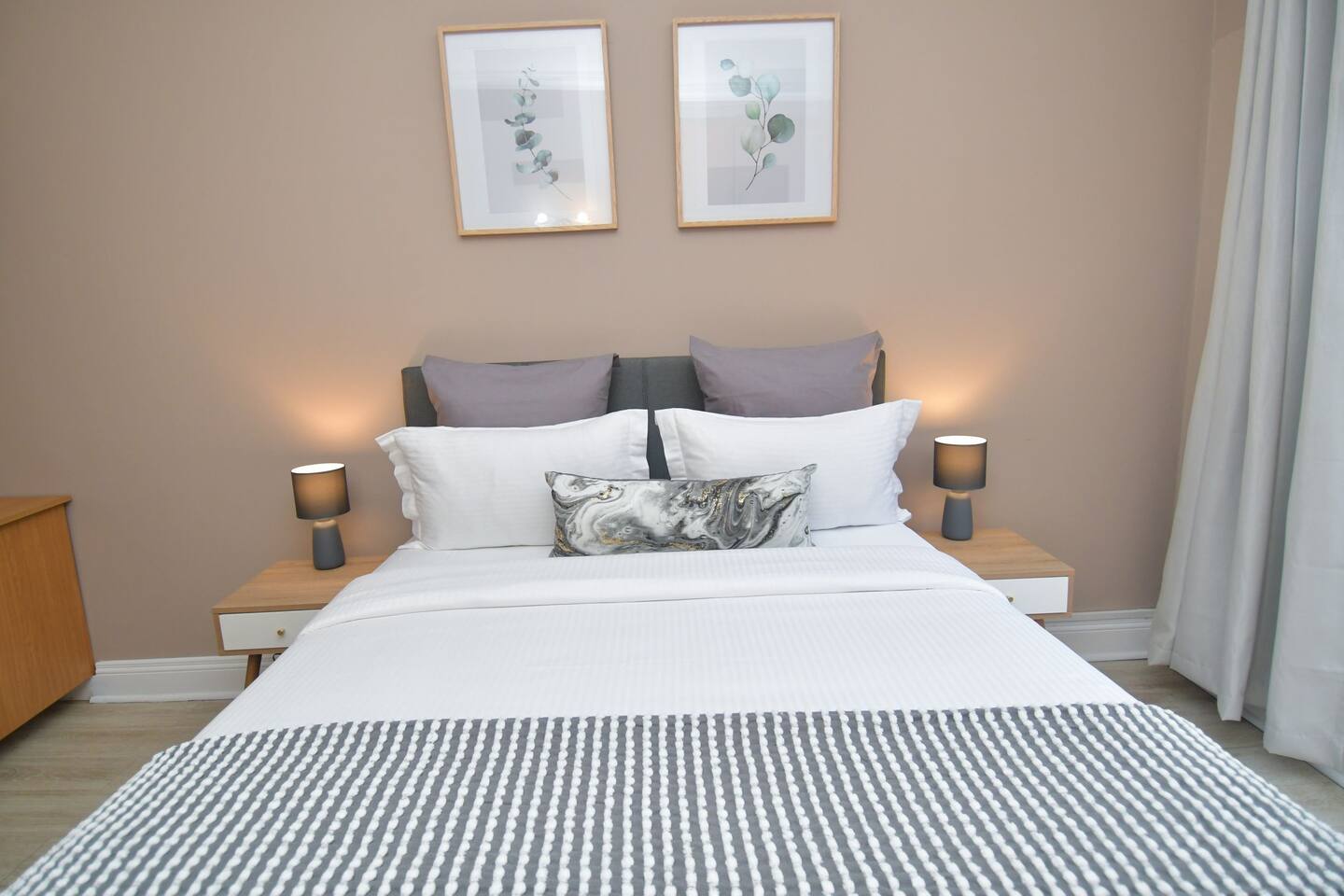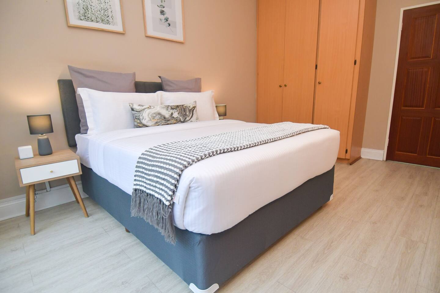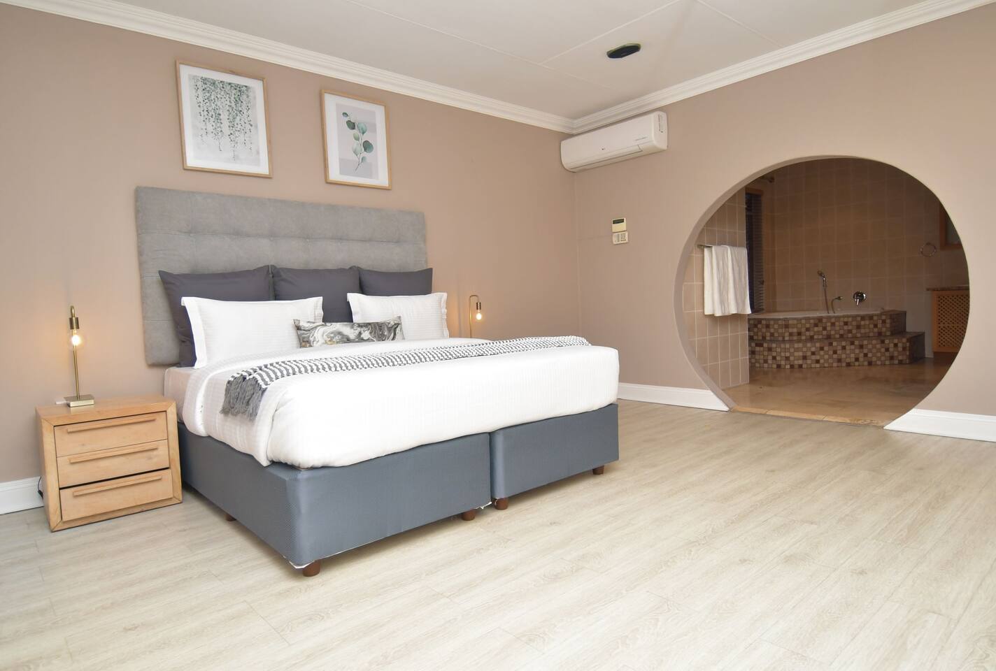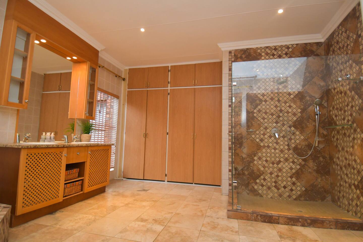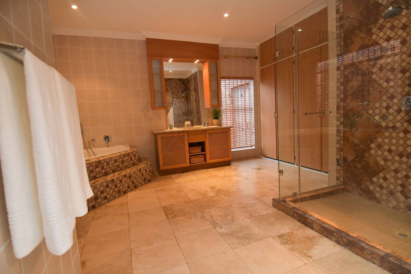 Soak up the modern and contemporary charm of this newly renovated and spacious home. Enjoy your stay without worrying about power outages as our property is equipped with a generator to keep lights, TV and essential appliances in working order. Play your favorite shows or music on Netflix, YouTube premium or DSTV on 2 TVs (65 and 55inch) via voice commands, all facilitated by a high speed (50mbps) uncapped and unshaped internet connection. Use you voice to turn on/off the lights as you please or have them turn on automatically in the morning to wake you up. Enjoy access to 2 living rooms, 2 kitchens and a gorgeous dining room. A full self catering unit is included if privacy is required within your group. The unit comes fully equipped with it's own living area, bedroom and bathroom. The house is cleaned and serviced 2 times a week at no additional cost. Sleep in bedrooms overlooking a beautiful garden, equipped with air conditioners and high quality mattresses while our fine bedding will carress you into a night of peaceful sleep.