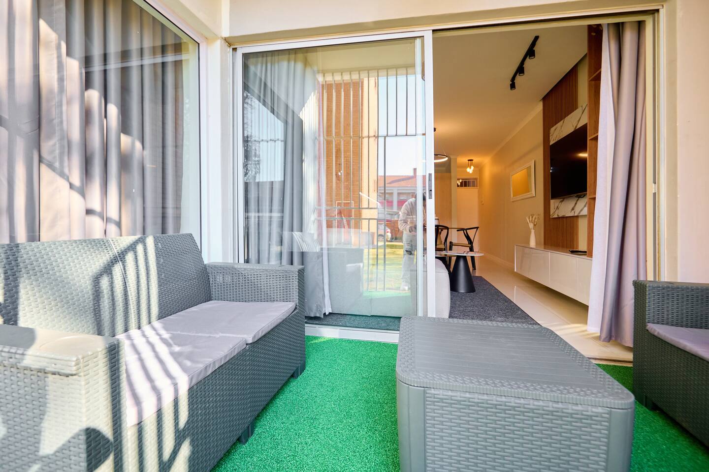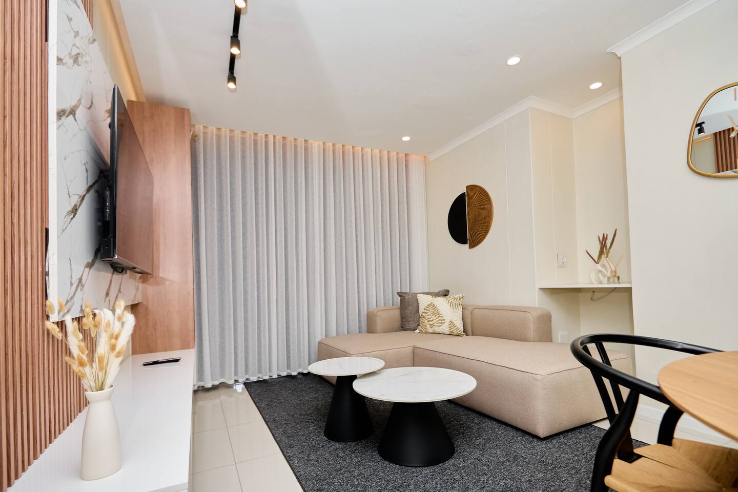 Welcome to The Dream. A cozy two-bedroom, two-bathroom apartment. Located in a charming and quiet building, our apartment offers a spacious lounge, a fully equipped kitchen, and a relaxing patio. Just steps away from Menlyn Mall and Sunbet Arena, you’ll have access to great shopping, dining, and entertainment. Perfect for both leisure and business travelers. Book your stay and experience Menlyn maine's best!