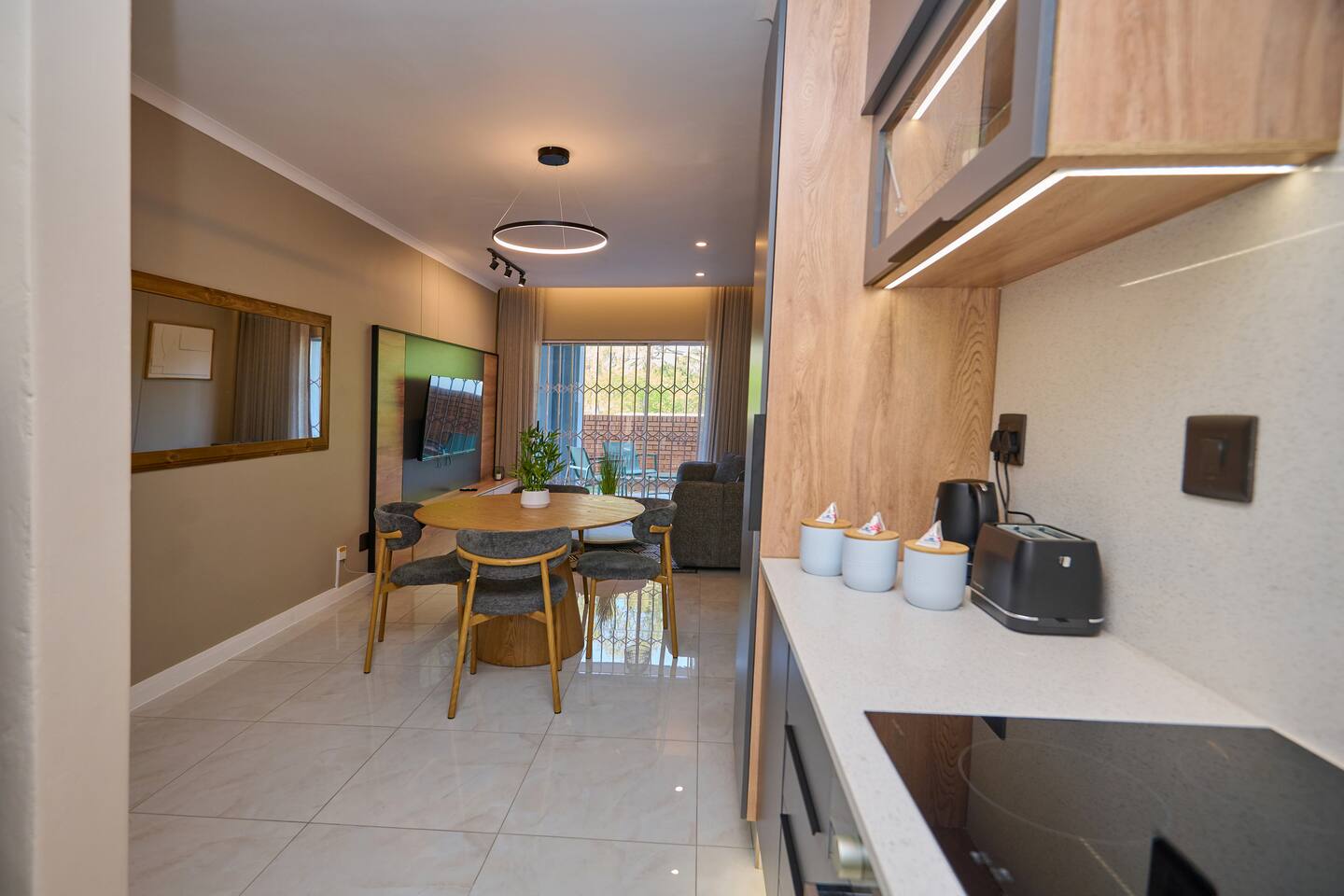 we had a lovely stay, nice and spacious living area, lovely modern place, i am loving the interior design.