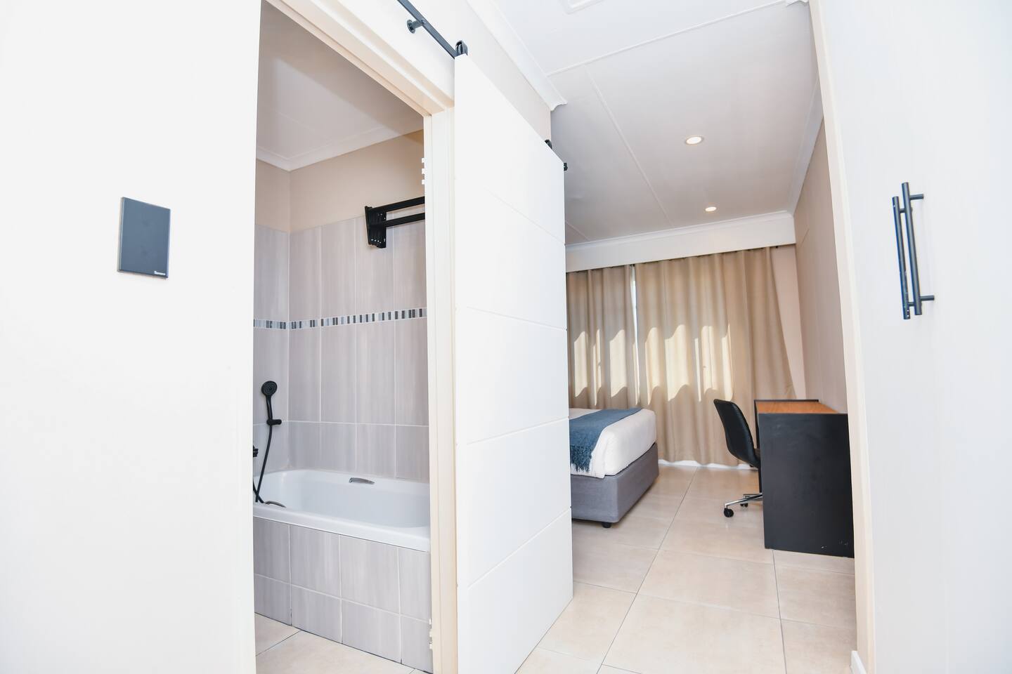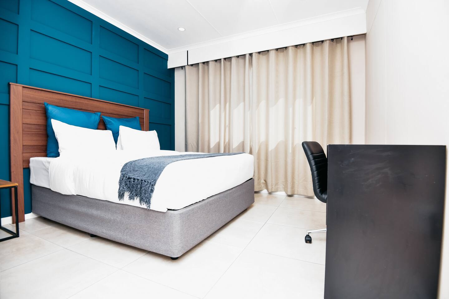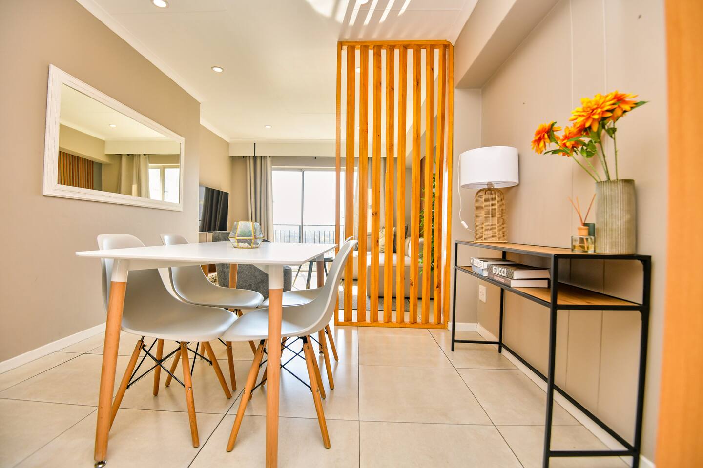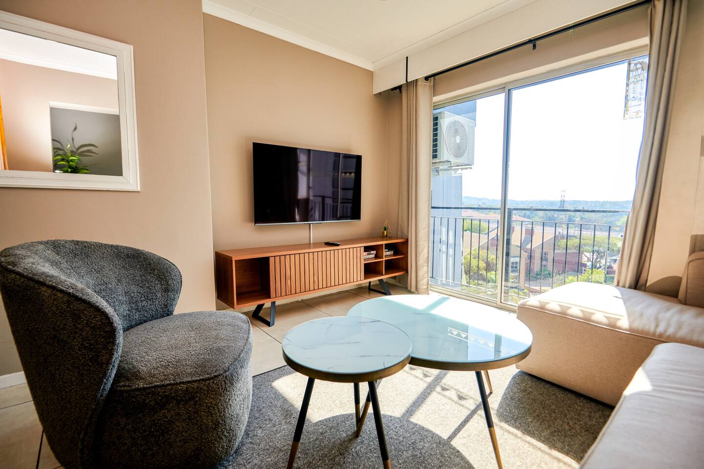 Soak up the modern and contemporary charm of this newly renovated apartment with a great view located on 5th floor of Menlyn Place. The unit is equipped with an inverter to ensure you can always keep the lights on and run essential appliances. Play your favorite shows or music on Netflix, YouTube premium (No ads) or DSTV on a 55 inch TV via voice commands. Take a walk to Menlyn maine and enjoy the best Pretoria has to offer.